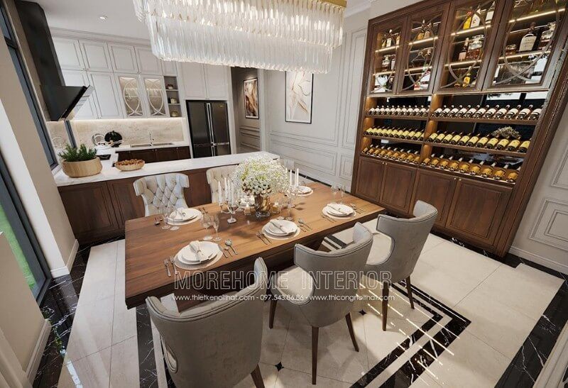 Mẫu bàn ăn tân cổ điển là điểm nhấn cho phòng ăn sang trọng, đẳng cấp