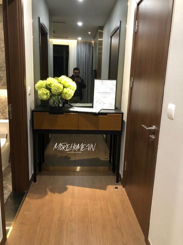 Một mẫu bàn trang trí nhỏ xinh giúp góc hành lang đỡ trống trải để gia chủ có thể bày biện những món đồ xinh xắn làm đẹp cho không gian nhà mình