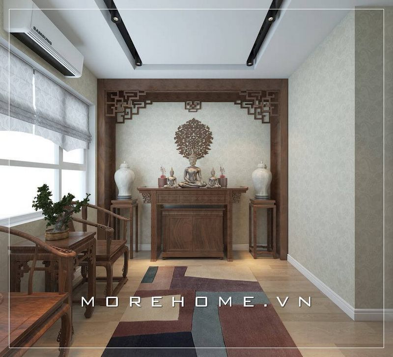 Cách bố trí bàn thờ phật gỗ tự nhiên cho căn hộ chung cư khoa học tiện nghi