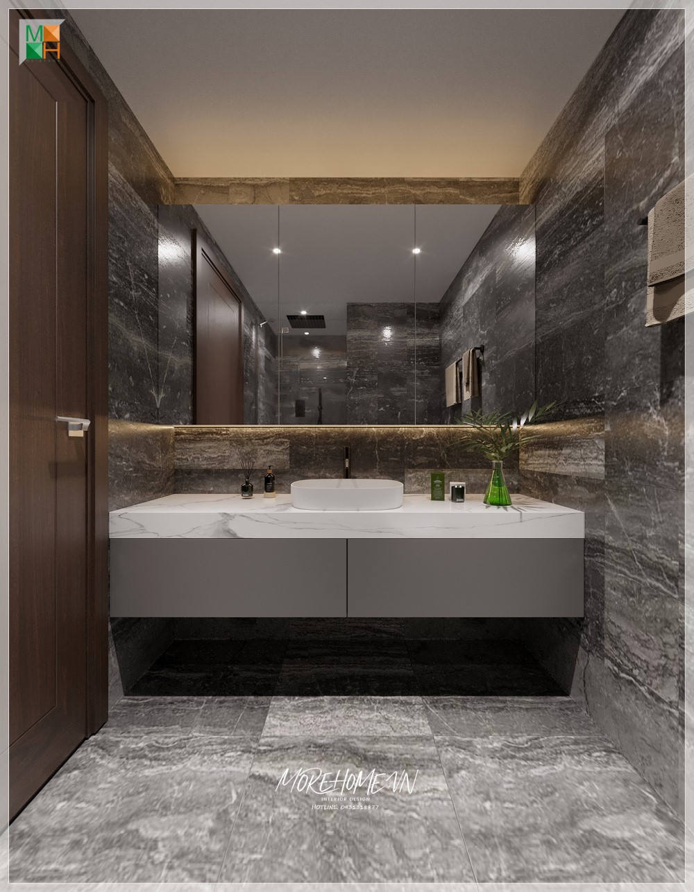 Kệ tủ lavabo treo tường gỗ công nghiệp mặt đá trắng vân mây hiện đại cung cấp sự tiện lợi cho người sử dụng, giúp sắp xếp các vật dụng cần thiết trong phòng một cách gọn gàng và có thể đóng nắp.