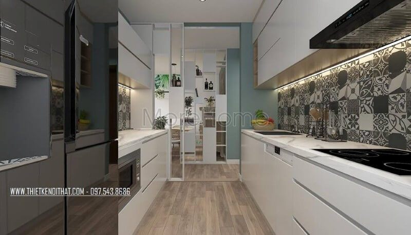 Thiết kế nội thất phòng bếp chung cư hiện đại, đơn giản và tiện nghi
